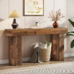 【Farmhouse Charm with Spacious Length】: The entryway console exudes rustic appeal, characteristic of country-style decor. Its significant length of 63 inches offers ample space for displaying decorative items, such as lamps, vases, or picture frames, enhancing the home's welcoming atmosphere