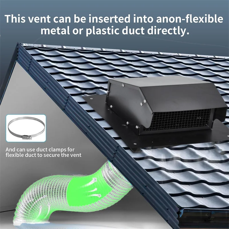 – Enhanced Ventilation: The fine mesh design of this roof vent provides optimal airflow while keeping debris and animals out, effectively blocking birds and leaves and preventing blockages in the duct for uninterrupted venting